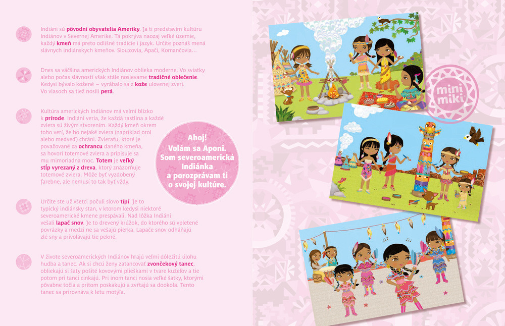Knižky z kolekcie minimiky patria dlhodobo k našim najpredávanejším. Predstavujú tým úplne najjednoduchším a zároveň hravým spôsobom módu a niečo z kultúry cudzích krajín. Deti vďaka nim poodhalia každodenný život ľudí z najrôznejších kútov sveta, ich zvyky alebo navštívia zaujímavé miesta. Vďaka tomu získajú a upresnia si svoje predstavy o cudzej krajine, jej obyvateľoch, folklóre či móde. Viac ako 300 prekrásnych farebných samolepiek, atraktívne obrázky a dvojjazyčné texty, urobia ich spoznávanie ešte zaujímavejším a komplexnejším.