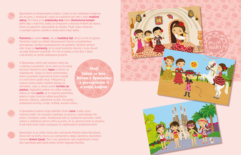 Knižky z kolekcie minimiky patria dlhodobo k našim najpredávanejším. Predstavujú tým úplne najjednoduchším a zároveň hravým spôsobom módu a niečo z kultúry cudzích krajín. Deti vďaka nim poodhalia každodenný život ľudí z najrôznejších kútov sveta, ich zvyky alebo navštívia zaujímavé miesta. Vďaka tomu získajú a upresnia si svoje predstavy o cudzej krajine, jej obyvateľoch, folklóre či móde. Viac ako 300 prekrásnych farebných samolepiek, atraktívne obrázky a dvojjazyčné texty, urobia ich spoznávanie ešte zaujímavejším a komplexnejším.