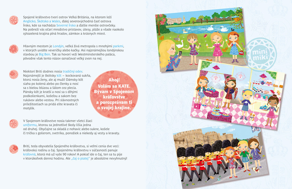 Objavuj spoločne s Kate Spojené kráľovstvo! Navštívte Big Ben a veľké londýnske parky, pochutnajte si na mini tortičke zvanej cupcake v útulnej kaviarničke, objavujte staré škótske hrady a prejdite sa po romantických anglických plážach.