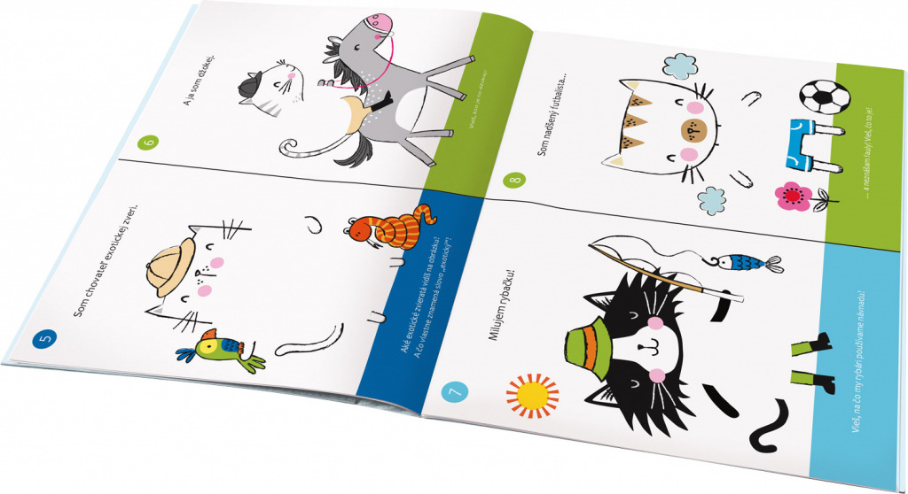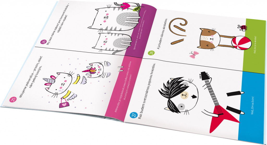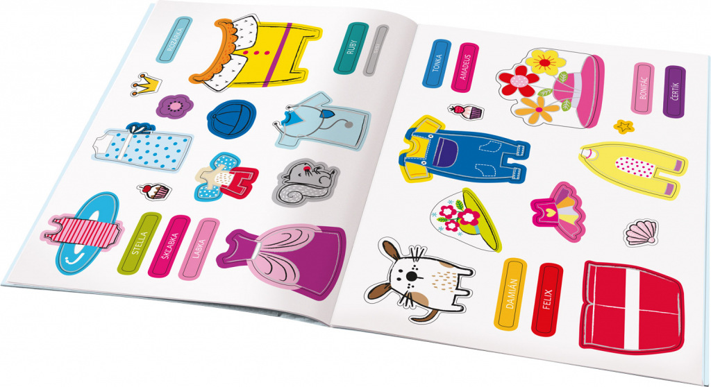 Dajte milým mačičkám mená, vyberte správne samolepky a oblečte ich podľa toho, čo majú rady alebo čomu sa venujú. A nezabudnite odpovedať na naše otázky! Ak by ste snáď boli bezradní, nič sa nedeje: v knižke nájdete aj správne odpovede. A keď z vás budú mačací odborníci, môžete si nakresliť vlastné zvieratko a doplniť jeho obrázok všetkým, čo potrebuje, aby bolo medzi ostatnými spokojné. Napríklad aj nejakou ľstivou otázkou a správnou odpoveďou!