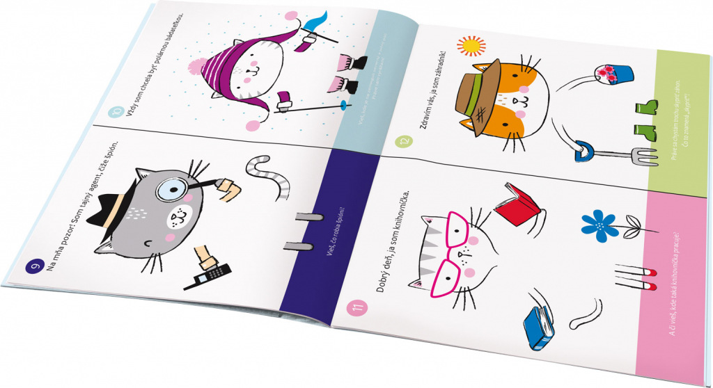 Na stránkach tejto knižky sa mačičky stanú vašimi sprievodkyňami svetom ľudských záľub a profesií. Každý koníček a každá profesia sú niečím zaujímavé – schválne vyskúšajte, čo o nich viete? Predovšetkým sa však dobre bavte!