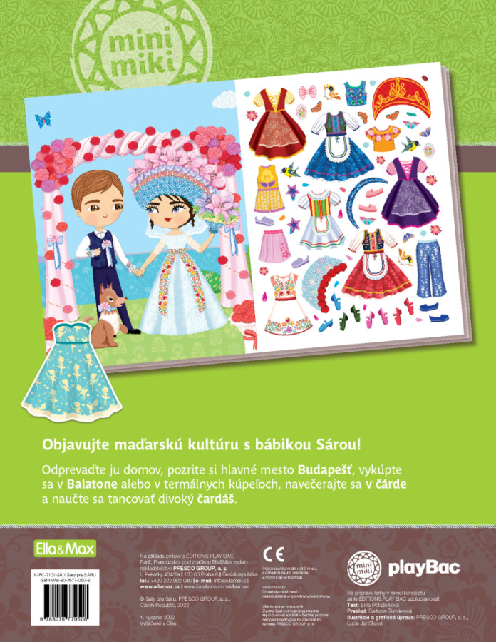 Objavujte maďarskú kultúru s bábikou Sárou! Odprevaďte ju domov, prehliadnite si hlavné mesto Budapešť, okúpte sa v Balatone alebo v termálnych kúpeľoch, povečerajte v čárde a naučte sa tancovať divoký čardáš. Vďaka tejto novinke zo série, ktorá patrí k našim najpredávanejším, spoznajú malí čitatelia niečo z maďarskej kultúry a kúzla tejto krajiny a tým najjednoduchším a zároveň hravým spôsobom poodhalia každodenný život tamojších ľudí, ich zvyky alebo navštívia zaujímavé miesta. Takto si upresnia svoje predstavy o inej krajine, jej obyvateľoch, folklóre či móde.