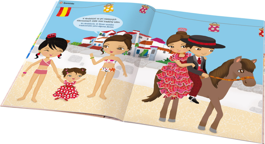 Táto séria predstavuje najmenším tahitskú, španielsku, indiánsku, či eskimácku kultúru. Deti zábavnou formou získajú a spresnia si svoje predstavy o cudzích krajinách a ich obyvateľoch. V každej knižke objavia 300 samolepiek a mnoho obrázkov skúsenej ilustrátorky a vyštudovanej štylistky Julie Camel, ktorá svojim postavičkám, ich odevom i kulisám vdýchla autenticitu. Veľkou zaujímavosťou sú v neposlednom rade aj dvojjazyčné texty v obrázkoch, vďaka ktorým bude pre malých čitateľov poznávanie ešte zaujímavejšie a komplexnejšie.