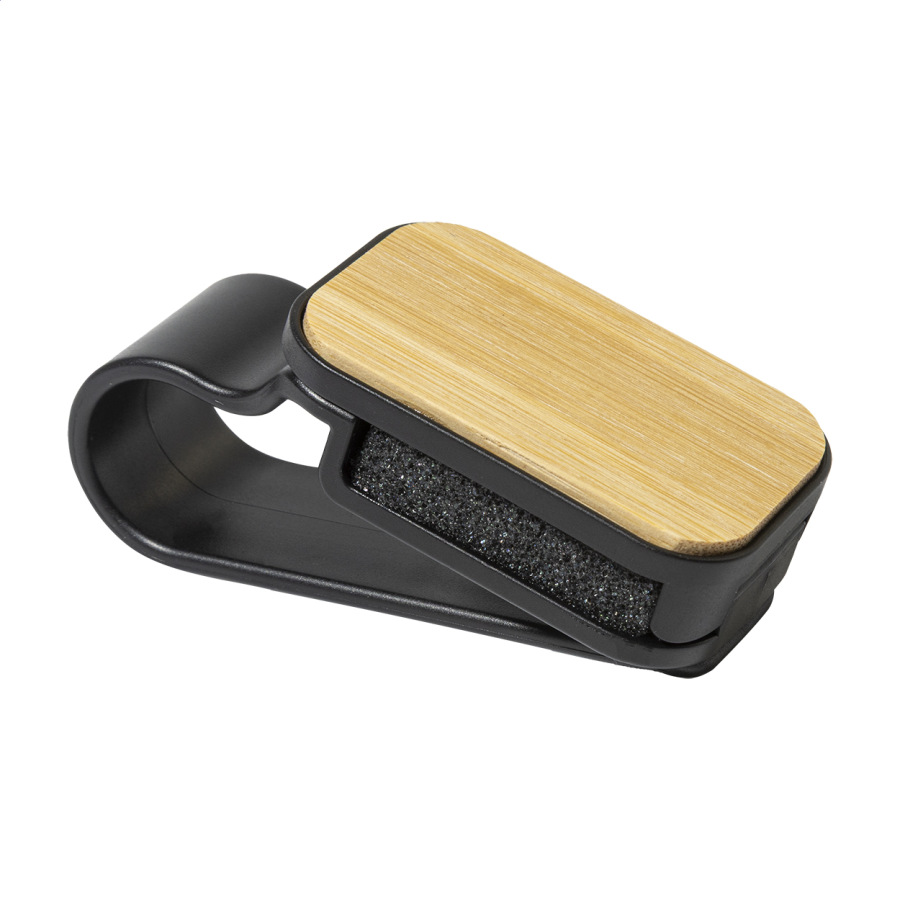 Praktický držiak slnečných okuliarov na clonu do auta z recyklovaného ABS a bambusu.