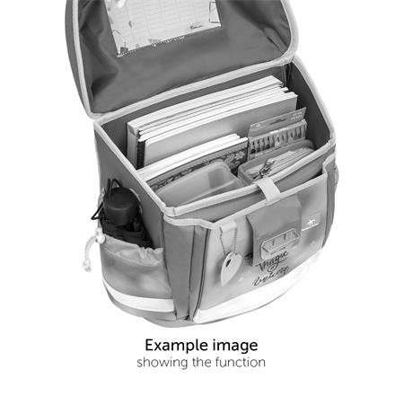 Školské tašky pre kreativitu, hravosť a jedinečnosť - 3 vnútorné priehradky (vhodné na knihy veľkosti A4) + 1 odkladací priestor na rozvrh + 2 bočné priehradky (na dáždnik + 0,7 litrová fľaša) - nastaviteľné predné vrecko na držiak pera - vrecko na mobil na zips - ergonomický tvar - priedušný polstrovaný chrbát - polstrované ramenné popruhy v tvare S, nastaviteľný hrudný a bedrový pás - jednoduché otváranie vďaka kovovej pracke, s reflexnými prvkami - nastaviteľný hrudný popruh pre optimálne rozloženie hmotnosti - certifikát AGR - materiál: vodeodolný polyester - veľkosť: 19x36x32 cm - hmotnosť: 0,93-0,99 kg -odporúčané pre 6-9 ročné deti -odporúčané od výšky 110 cm -2 roky záruka