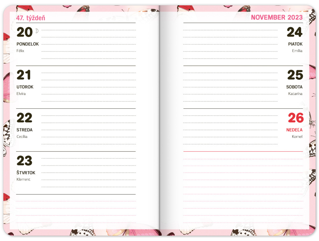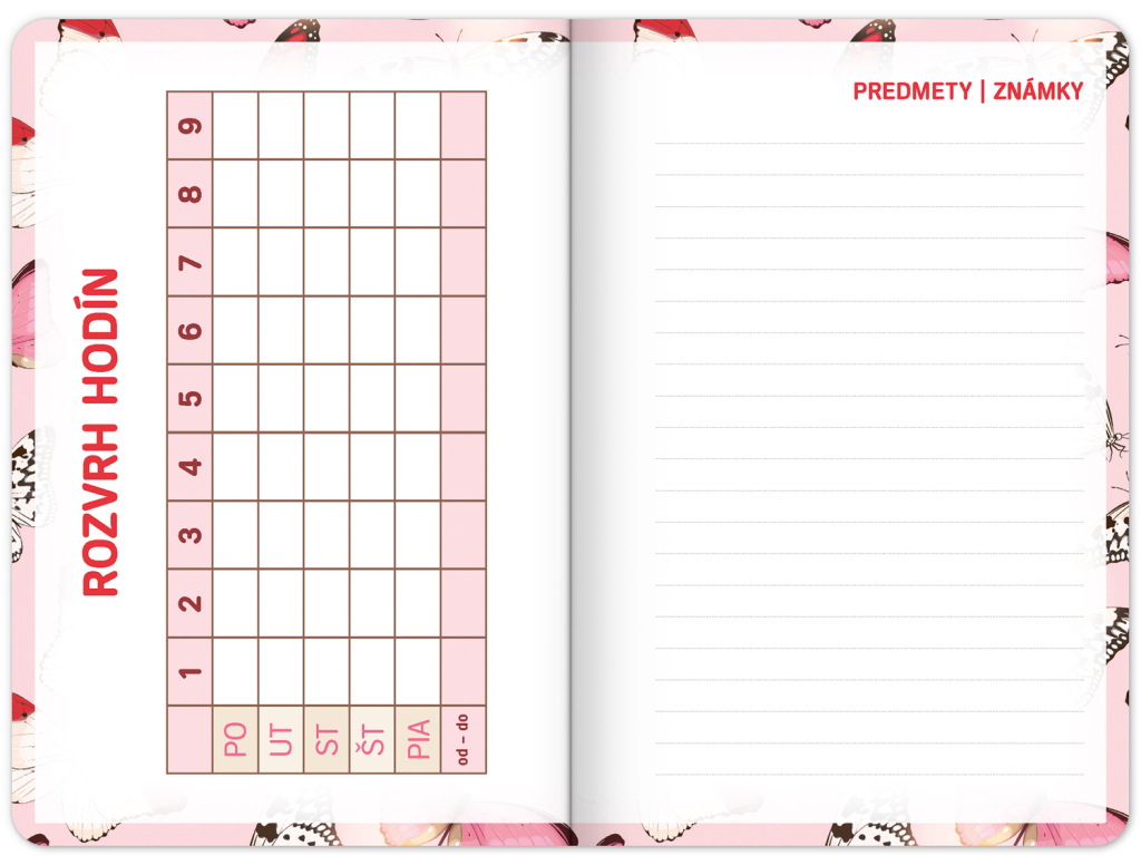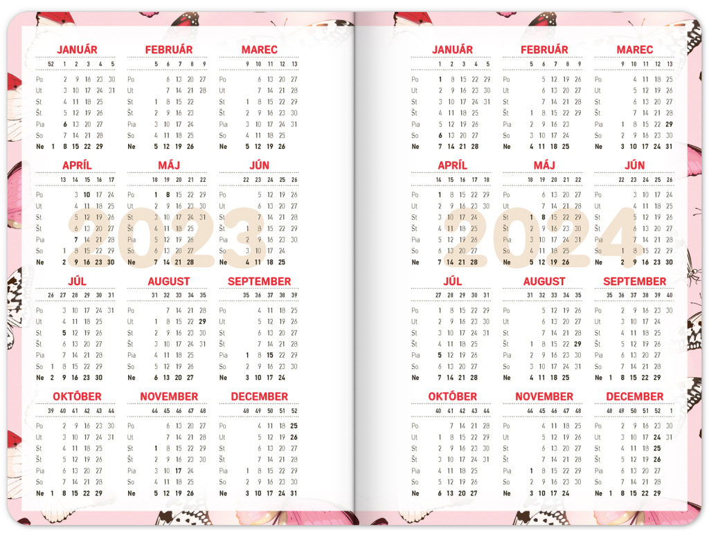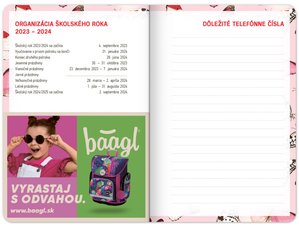 Školský diár Motýliky (september 2023 – december 2024), 9,8 × 14,5 cm