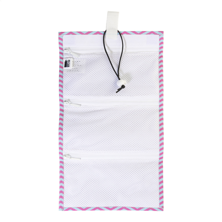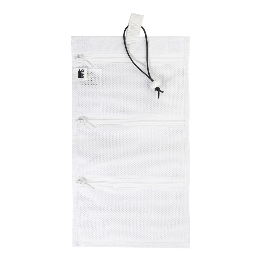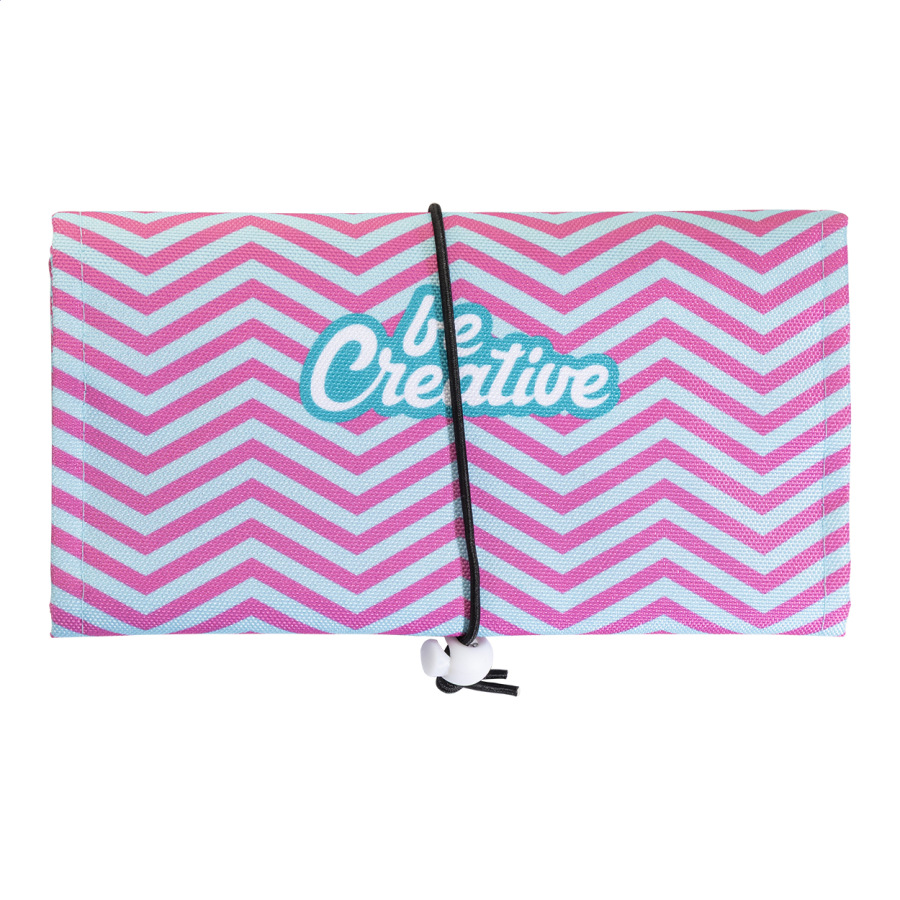 Rolovacia taška na káble na zákazku z RPET s 3 sieťovanými vreckami na zips a elastickým zapínaním. S celoplošnou sublimačnou potlačou. 600D RPET polyester s výrazným RPET štítkom. Cena nezahŕňa tlačovú prípravu. Min. mn.: 25 ks.