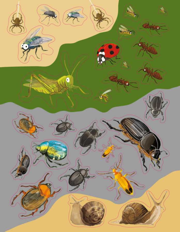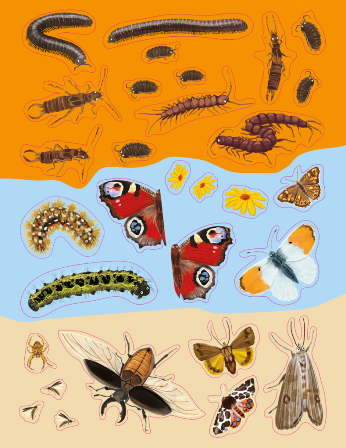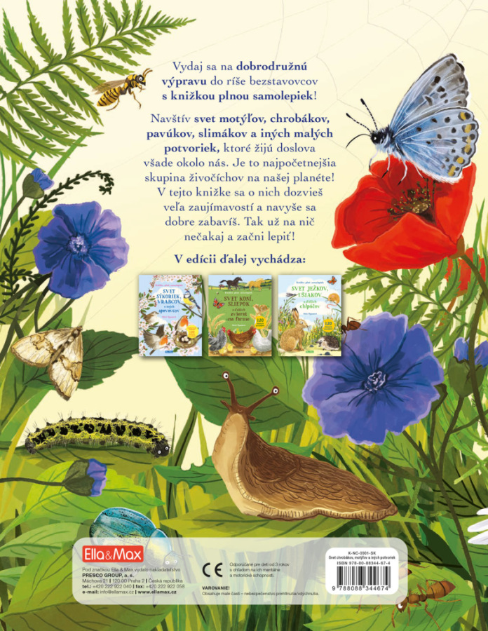 Vydajte sa na dobrodružnú výpravu do ríše bezstavovcov s knižkou plnou samolepiek! Navštívte svet motýľov, chrobákov, pavúkov, slimákov a ďalších potvoriek, ktoré žijú doslova všade okolo nás. Veď ide o najpočetnejšiu skupinu živočíchov na našej planéte! V tejto knižke sa o nich dozviete mnoho zaujímavostí a navyše zažijete plno zábavy pri dotváraní 11 prekrásnych prírodných scenérií pomocou rozkošných samolepiek.