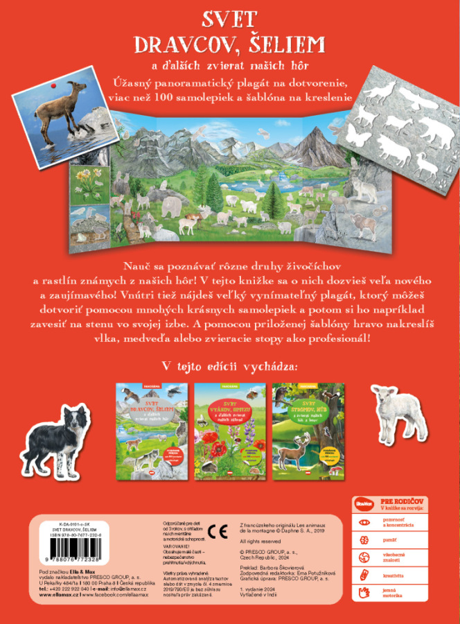 Naučte sa poznávať rôzne druhy živočíchov a rastlín známych z našich hôr! V tejto knižke sa o nich dozviete veľa nového a zaujímavého! Vnútri tiež nájdete veľký vynímateľný plagát, ktorý môžete dotvoriť pomocou mnohých krásnych samolepiek a potom si ho napríklad zavesiť na stenu vo svojej izbe. A pomocou priloženej šablóny hravo nakreslíte vlka, medveďa alebo zvieracie stopy ako profesionál!