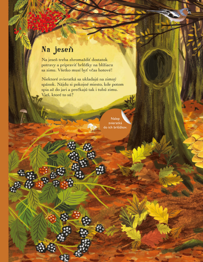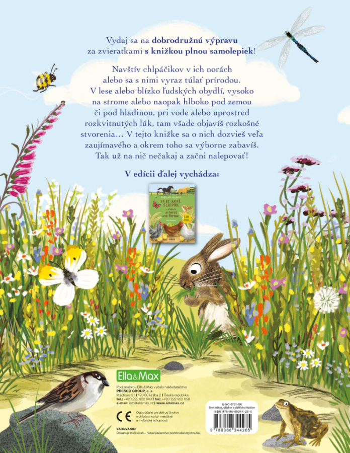 Vydajte sa na dobrodružnú výpravu za zvieratkami s knižkou plnou samolepiek! Navštívte chlpáče v ich peleštekoch, pusťte sa s nimi na potulky prírodou… Hlboko v lese alebo neďaleko ľudských obydlí, vysoko na strome alebo naopak hlboko pod zemou či pod hladinou, pri vode alebo uprostred rozkvitnutých lúk, tam všade objavíte roztomilé tvorčeky… V tejto knižke sa o nich dozviete mnoho zaujímavostí a navyše zažijete plno zábavy pri dotváraní 11 prekrásnych prírodných scenérií pomocou rozkošných samolepiek.