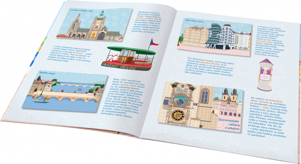 Obľúbená séria minimiky prichádza s ďalšou novinkou v podobe zábavnej samolepkovej knižky, v ktorej budú deti spoločne s bábikou Terezkou a jej kamarátkami Kačkou a Aničkou objavovať najznámejšie zákutia mesta Prahy, jednej z najkrajších európskych metropol. Známe pražské scenérie môžu deti dopĺňať množstvom krásnych samolepiek podľa vlastnej fantázie a v knihe nájdu aj veľa zaujímavých informácií o tunajších pamiatkach, známych miestach, ale aj napríklad o českej kultúre.