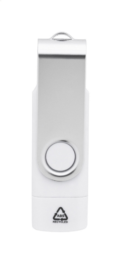 Otočný USB flash disk OTG v puzdre z recyklovaného ABS a kovu s pamäťou 8/16/32 GB. S pripojeniami USB a USB-C. USB 2.0.