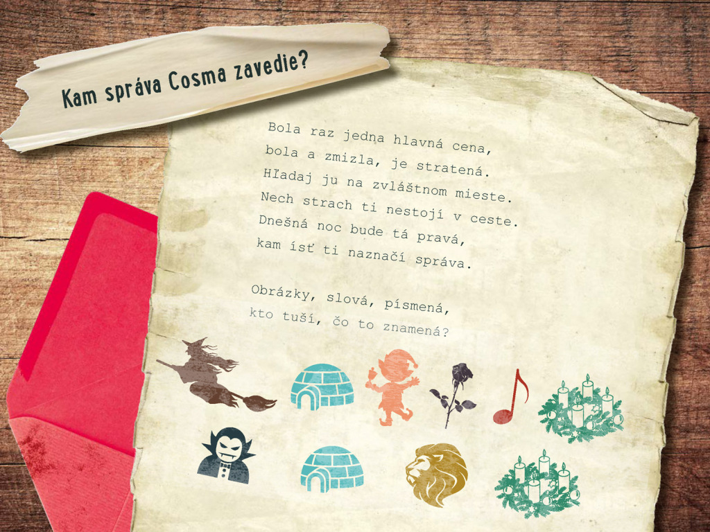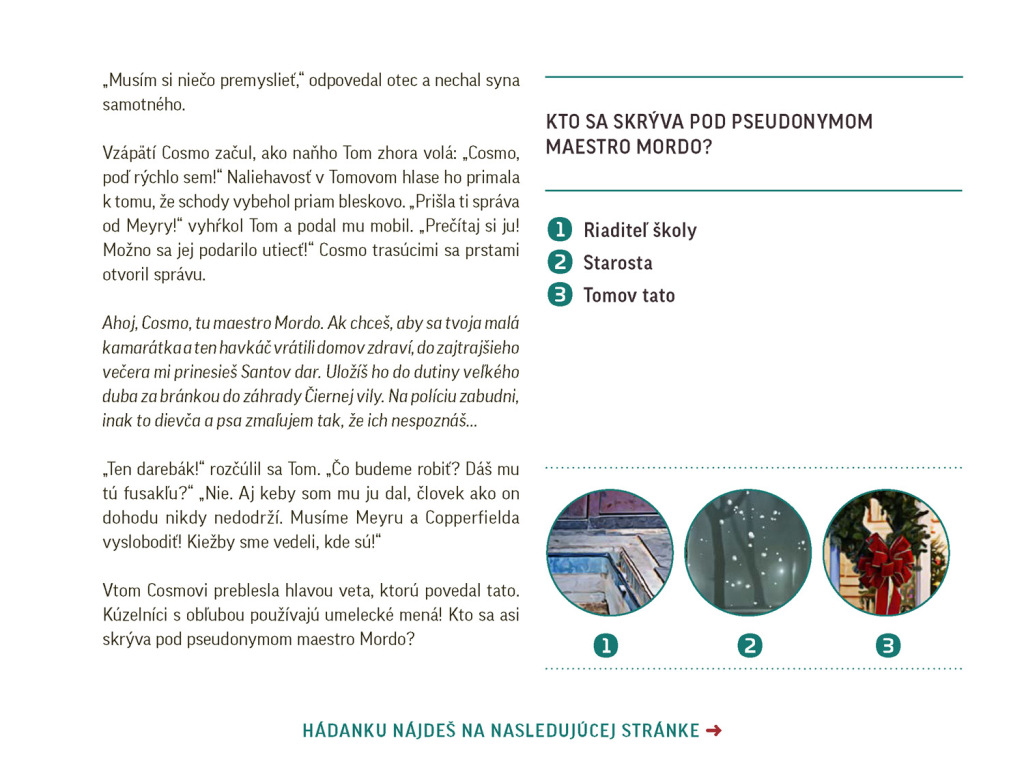 V škole trinásťročného Cosma sa chystá vianočná tombola, lenže v noci za záhadných okolností zmizne hlavná cena – veľká medovníková chalúpka. Zvláštna stopa zavedie Cosma a jeho kamarátov do tajomnej Čiernej vily. Rozhodnú sa rozlúštiť tajomstvo tohto strašidelného sídla. Máte dosť odvahy a dôvtipu? Pomôžete im rozlúsknuť všetky hádanky, odhaliť záhadu domu a zmiznutia medovníkovej chalúpky a zachrániť školskú vianočnú slávnosť?