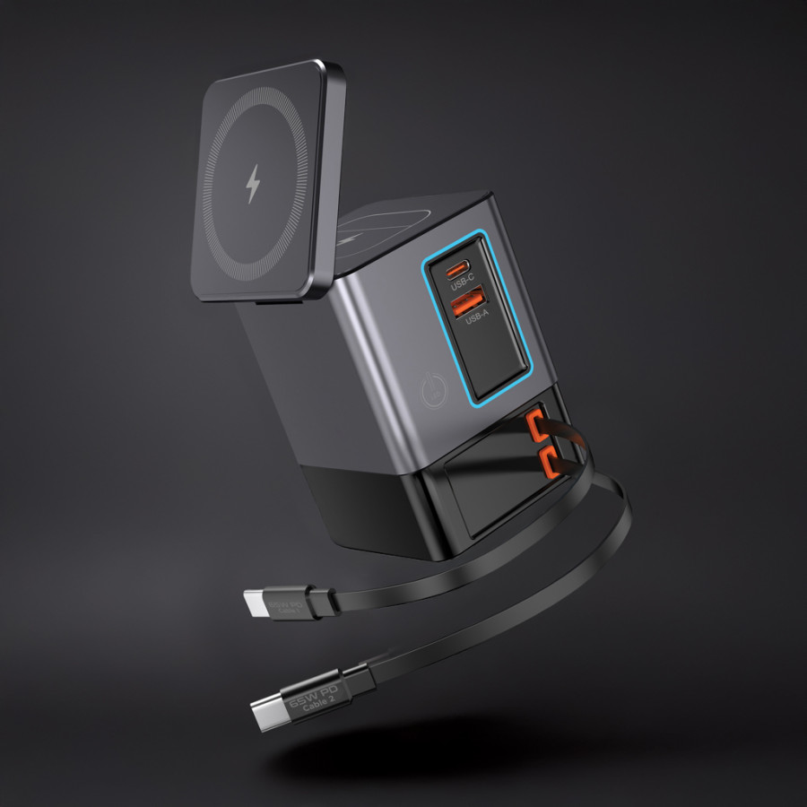Všestranné riešenie na ktoré ste čakali. Sacramento je 105W GaN nabíjacia stanica kombinujúca maximálny výkon so zabudovaným pohodlím. Má dve integrované 65W USB-C navíjacie káble, vďaka ktorým máte rýchle nabíjanie na dosah ruky. Potrebujete viac možností? Sacramento taktiež zahŕňa USB-C a USB-A porty, poskytujúc tým nabíjanie štyroch zariadení súčasne tj. laptopy, smartfóny, tablety a ďalšie – všetko naraz. Pre vaše bezdrôtové zariadenia je Sacramento vybavené výkonnou 15W magnetickou bezdrôtovou nabíjačkou, ktorá udrží váš telefón bezpečne na mieste a samostatnou bezdrôtovou podložkou navrhnutou špeciálne pre menšie predmety, ako sú slúchadlá alebo AirPods (max. 5W). Sacramento poskytuje vysoký výkon s kompaktným a efektívnym dizajnom – produkuje menej tepla a využíva energiu efektívnejšie ako tradičné nabíjačky. Sacramento je vyrobené z recyklovaného ohňovzdorného PC s certifikátom RCS (Recycled Claim Standard). Celkový recyk. obsah: 26 % na základe celk. hmotnosti položky.