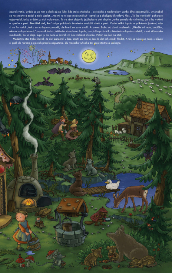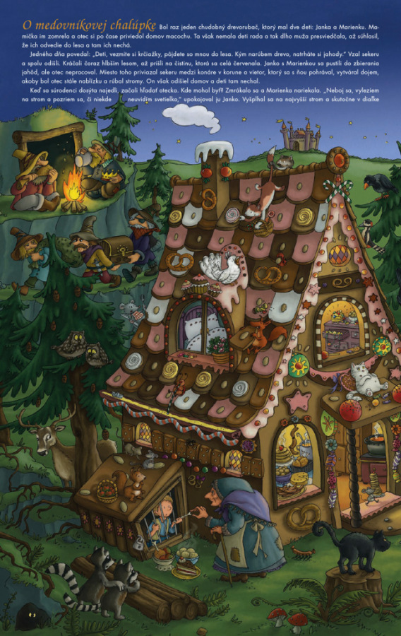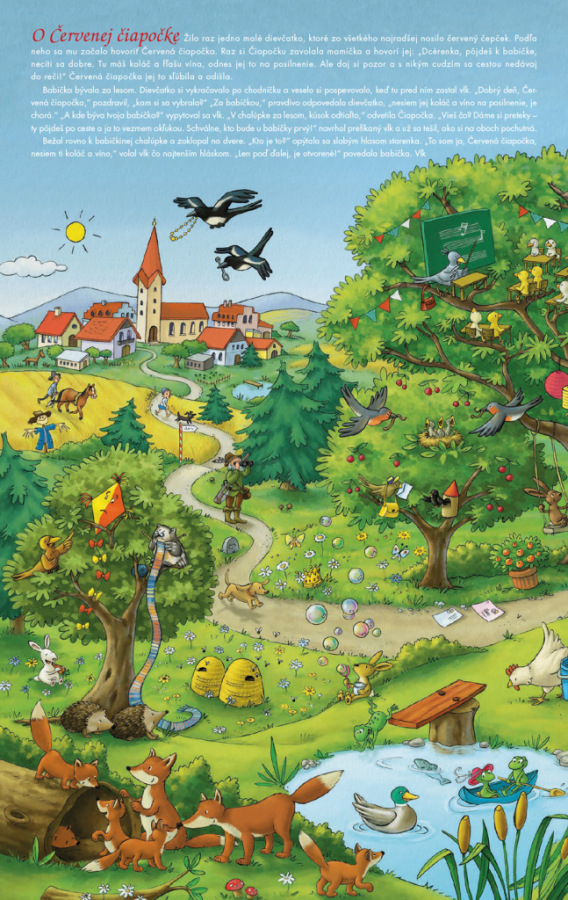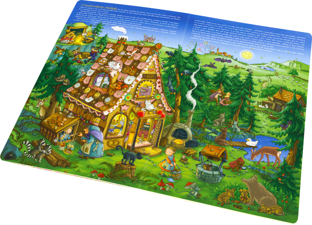 Okrem napínavých dobrodružstiev hlavných hrdinov je tu možné objaviť aj množstvo drobných príhod ďalších rozprávkových postáv, tvorov a netvorov. Stačí len otvoriť knihu, ponoriť sa do rozprávkového sveta a začať ho objavovať. Tak hurá, do toho! Pomôžete princovi nájsť v spiacom zámku s množstvom komnát a tajomných zákutí spanilú Ruženku? A dokážete podľa obrázkov prerozprávať všetky udatné činy statočného krajčírika? Nebudete sa báť v tajomnom nočnom lese, kde ježibaba v perníkovej chalúpke väzní Janíčka a Marienku? A čo takto v chalúpke pri lese, kam sa vydáte s Červenou čiapočkou? Nenechajte sa zmiasť všetkými tými vystrájajúcimi a rozosmiatymi zvieratkami, ktorých je plný kraj a dávajte pozor, koho nájdete v babičkinej posteli! Ostražitosť bude potrebná aj u siedmych trpaslíkov – na Snehulienku má totiž zaostrené zlá macocha a usiluje sa o jej život. Ešteže v rozprávkach vždy dobro zvíťazí nad zlom! O tom by mohla rozprávať aj Popoluška – alebo to radšej skúsite vy, malí čitatelia?
