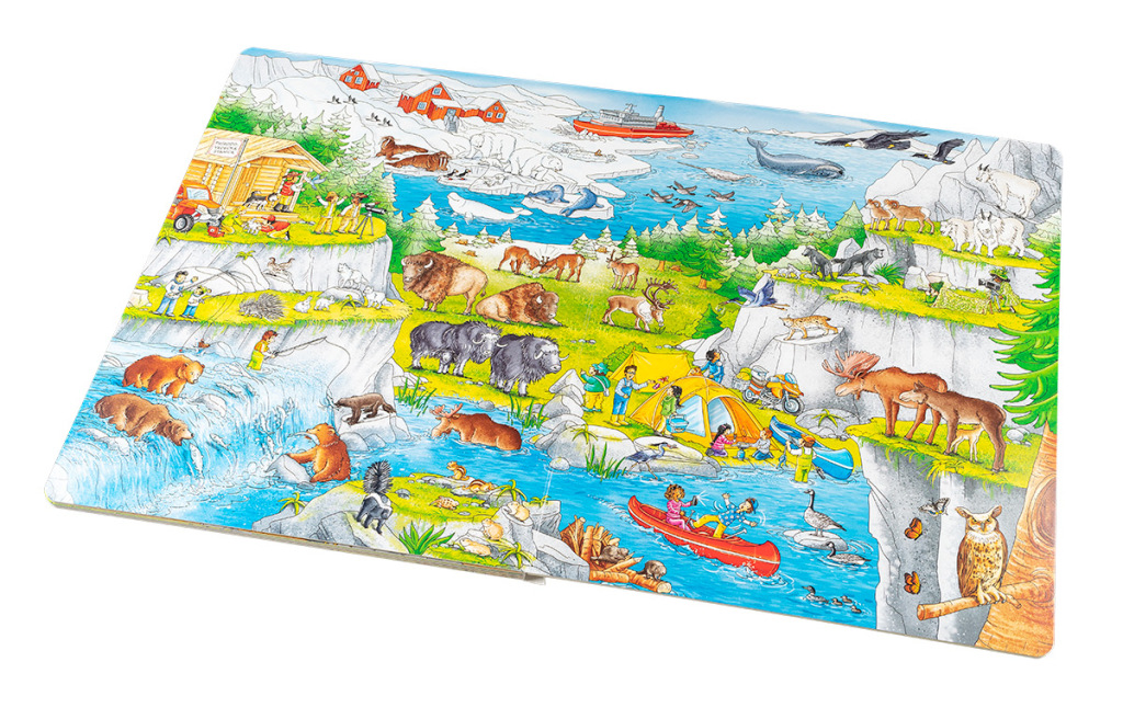 Viete, kde všade žijú zvieratá? V lesoch, na poliach, v mestách... Na súši, vo vode aj vo vzduchu. U nás, vo vnútrozemí, pri mori aj v hlbokých vodách oceánov, v pralese, na savane a dokonca aj v nehostinnej púšti alebo za polárnym kruhom, v oblastiach večného snehu a ľadu. Vydajte sa objavovať rozmanitých obyvateľov oblastí celého sveta, spoznajte ich životné podmienky, aj to, ako ich príroda na život v tom ktorom prostredí vybavila. Na ceste vás bude sprevádzať. Na ceste vás bude sprevádzať partia nadšených cestovateľov, ktorých nájdete na každom obrázku v tejto knihe – precvičte si pamäť a pozornosť a stránku za stránkou “čítajte“ ich dobrodružstvá v prepracovaných ilustráciách! Na konci knihy nájdete zoznam všetkých vyobrazených živočíchov, s pomocou ktorého sa môžete stať odborníkmi na známe aj menej známe zvieratá.