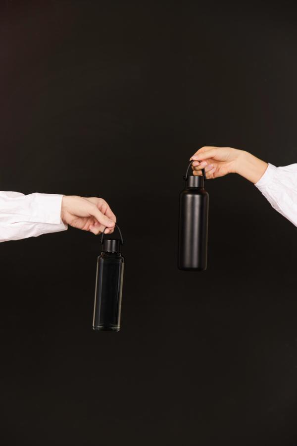 Štýlová dvojstenná vákuová fľaša je vyrobená z RCS certifikovanej recyklovanej nerezovej ocele. Je navrhnutá s minimalistickým PU držadlom a čiernymi detailmi. Nápoje udržia studené až 12 hodín a teplé až 6 hodín. Nie je vhodná do umývačky ani do mikrovlnnej rúry, iba ručné umývanie. Certifikované RCS (Recycled Claim Standard), certifikácia RCS zaručuje, že celý dodávateľský reťazec recyklovaných materiálov je certifikovaný. Celkový obsah recyklovaného materiálu je založený na celkovej hmotnosti výrobku. Tento produkt obsahuje 80% RCS certifikovanej recyklovanej nerezovej ocele.