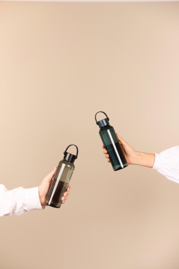Fľaša na vodu z BPA free recyklovaného PET materiálu s certifikáciou RCS. PU držadlo spolu s viečkom z nerezovej ocele pridáva nádych elegancie. Nie je vhodná do umývačky ani do mikrovlnnej rúry, iba ručné umývanie. Len pre studené nápoje. Certifikované RCS (Recycled Claim Standard), certifikácia RCS zaručuje, že celý dodávateľský reťazec recyklovaných materiálov je certifikovaný. Celkový obsah recyklovaného materiálu je založený na celkovej hmotnosti výrobku. Tento produkt obsahuje 61% RCS certifikovaného recyklovaného PET materiálu.