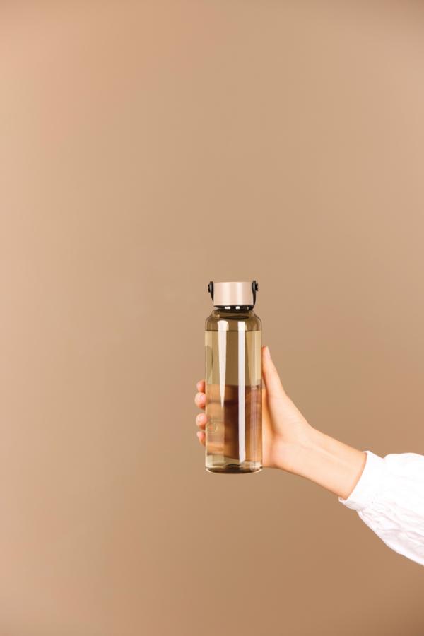 Fľaša na vodu z BPA free recyklovaného PET materiálu s certifikáciou RCS. PU držadlo spolu s viečkom z nerezovej ocele pridáva nádych elegancie. Nie je vhodná do umývačky ani do mikrovlnnej rúry, iba ručné umývanie. Len pre studené nápoje. Certifikované RCS (Recycled Claim Standard), certifikácia RCS zaručuje, že celý dodávateľský reťazec recyklovaných materiálov je certifikovaný. Celkový obsah recyklovaného materiálu je založený na celkovej hmotnosti výrobku. Tento produkt obsahuje 61% RCS certifikovaného recyklovaného PET materiálu.