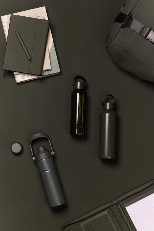 Odolná dvojstenná vákuová fľaša vyrobená z RCS certifikovanej recyklovanej nerezovej ocele s praktickým držadlom. Viečko má dva otvory: horná časť vhodná na pohodlné pitie a väčší otvor na jednoduché dopĺňanie a čistenie. Udrží nápoj studený až 12 hodín a teplý až 4 hodiny. Nie je vhodná do umývačky ani do mikrovlnnej rúry, iba ručné umývanie. Certifikované RCS (Recycled Claim Standard), certifikácia RCS zaručuje, že celý dodávateľský reťazec recyklovaných materiálov je certifikovaný. Celkový obsah recyklovaného materiálu je založený na celkovej hmotnosti výrobku. Tento produkt obsahuje 65% RCS certifikovanej recyklovanej nerezovej ocele.