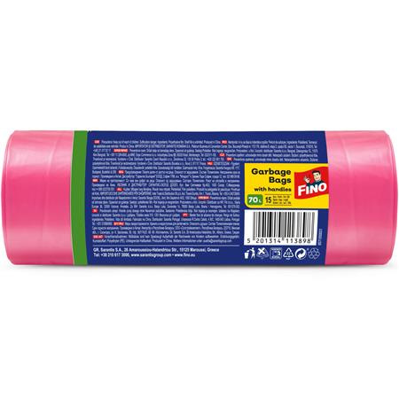 Vrecia na odpadky, s uškom, parfumované, 70 l, 15 ks, 62x73 cm, 16 µ, FINO "Premium handle